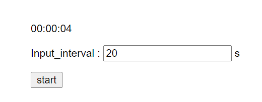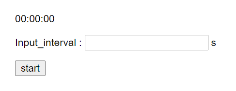let x = setInterval(function(){ if(bstart ==0){ output.innerHTML = "00:00:00"; } else{ let now = new Date(); let Time = parseInt((now.getTime()-start.getTime())/1000); let string = dateToString(parseInt(Time)); output.innerHTML = string; } },1000); //반복주기3. timer를 display 하도록 출력형식 변경하기